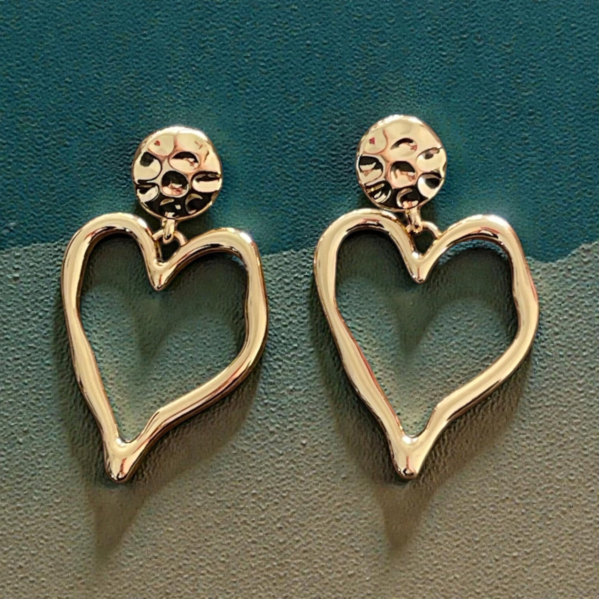 These delicate earrings feature a polished gold circle stud with a softly dangling gold heart, creating a timeless and romantic silhouette. Simple yet eye-catching, they’re perfect for everyday wear or adding a subtle touch of charm to any outfit.
